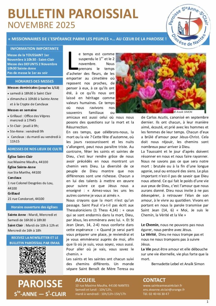 « NOVEMBRE, MOIS D’ESPÉRANCE CHRÉTIENNE