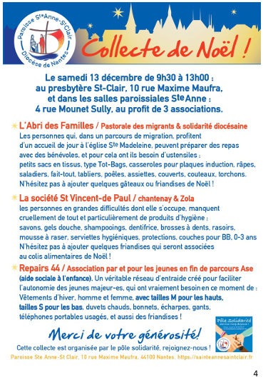messe du jour de Noël 10h30 à l’église Ste-Anne, 10h30 à Canclaux
