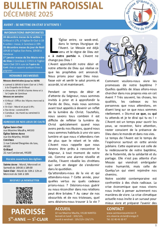 messe de Ste Marie mère de Dieu à Canclaux à 11h15 à l’église Saint-Clair 19 h